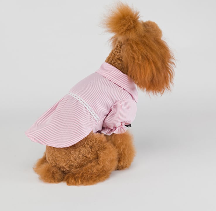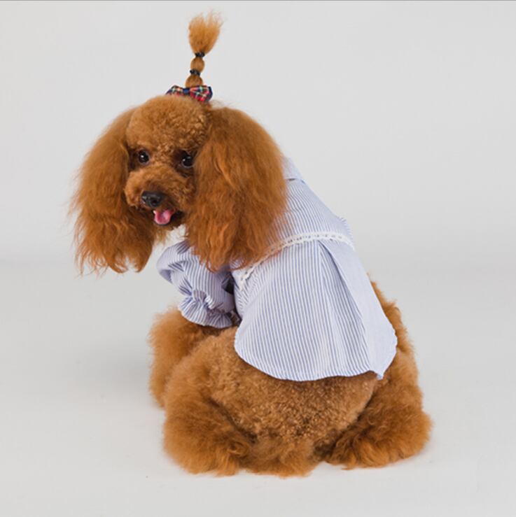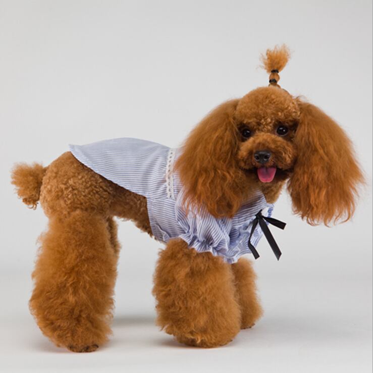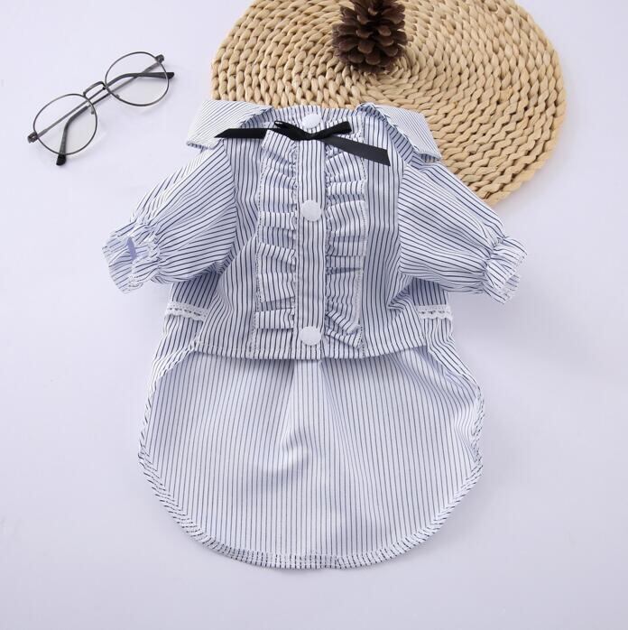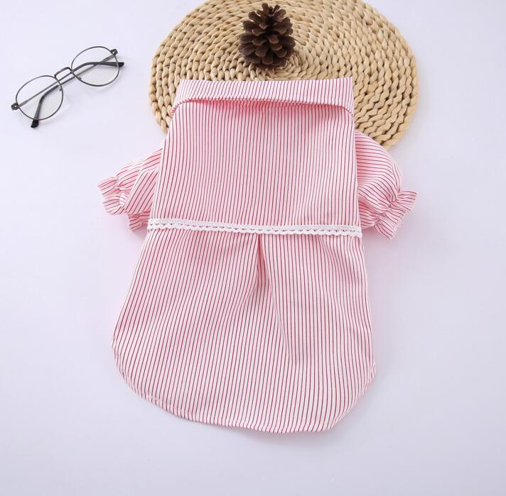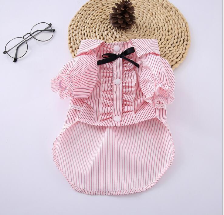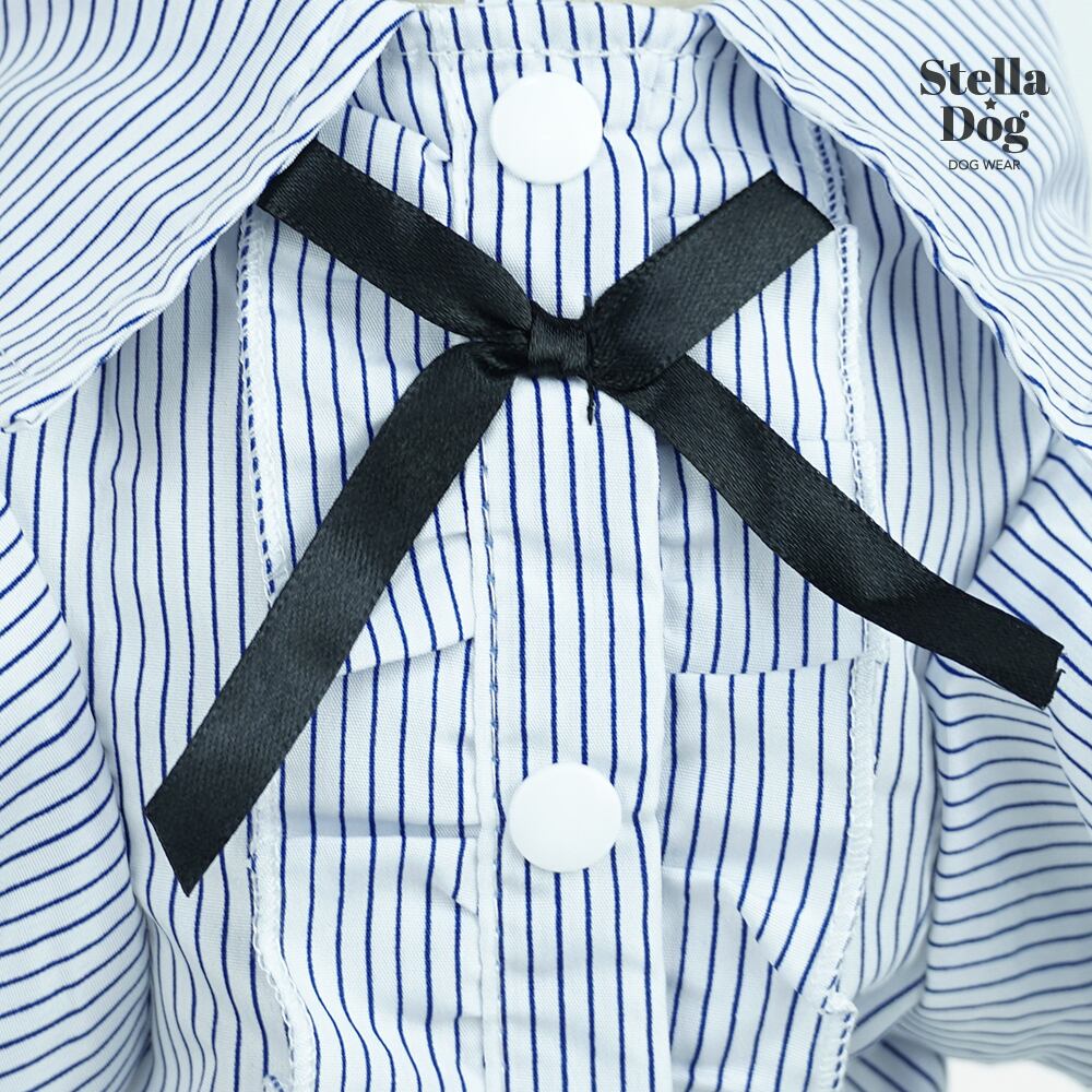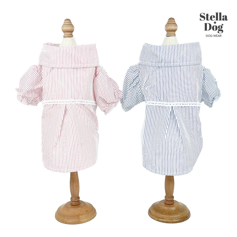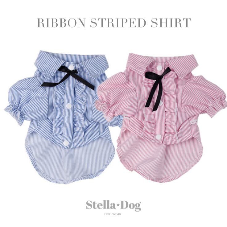 ★【閉店セール全品半額】リボン付きストライプシャツ ブラウス レッド ブルー 犬服 ドッグウェア