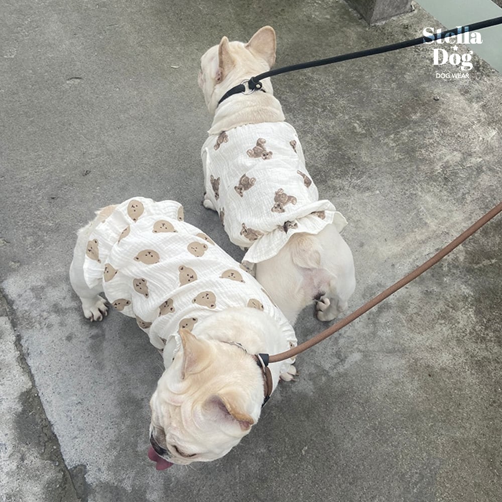 ★【閉店セール全品半額】ガーゼベアワンピース 生成り くまさん 大きいサイズ有り 犬服 ドッグウェア 春夏