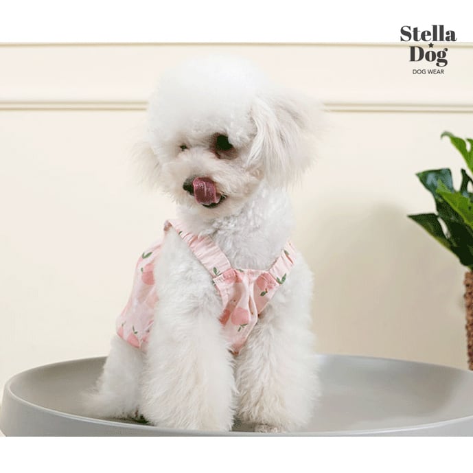 ★【閉店セール全品半額】ピーチバルーンワンピース 桃柄 ピンク 犬服 ドッグウェア 春夏